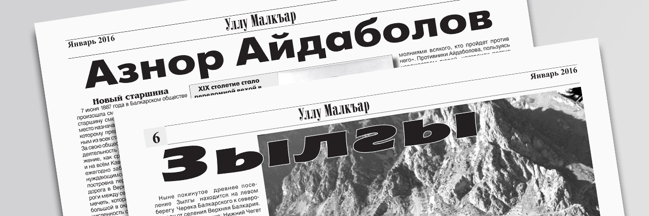 Газета «Уллу Малкъар» На балкарском и русском языках. Открыть в PDF № 1 (1), янарь 2016 г. Открыть в PDF № 2 (2), февраль 2016 г.